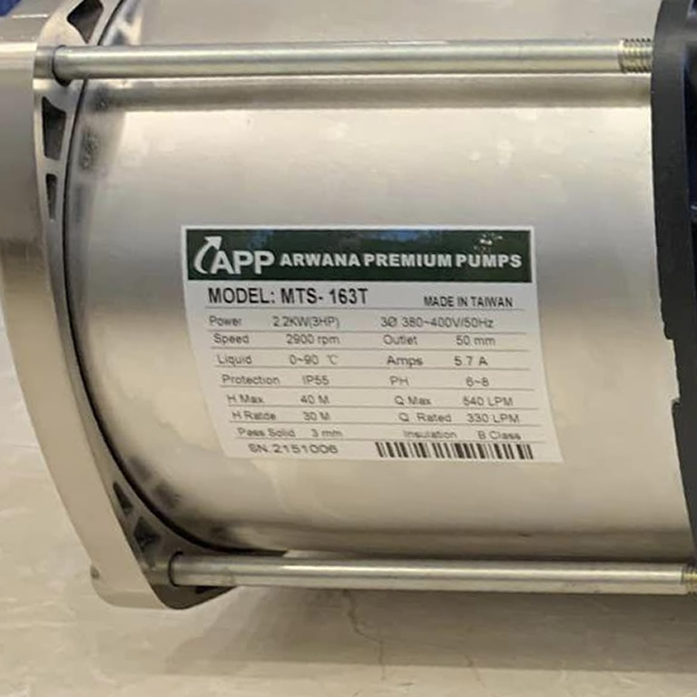 √ Máy bơm APP MTS-163T 3HP 380v với mức độ bảo vệ IP55