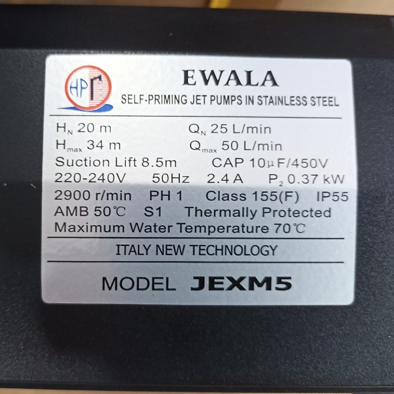 Thông số kỷ thuật Máy bơm nước EwaLa JEXM5