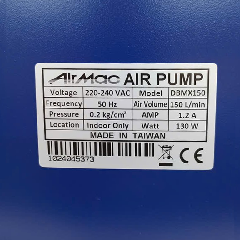 Máy Thổi Khí AirMac DBMX150 (130w), dòng bơm sủi oxy dùng cho ngành môi trường, y tế và nuôi trồng thuỷ hải sản.